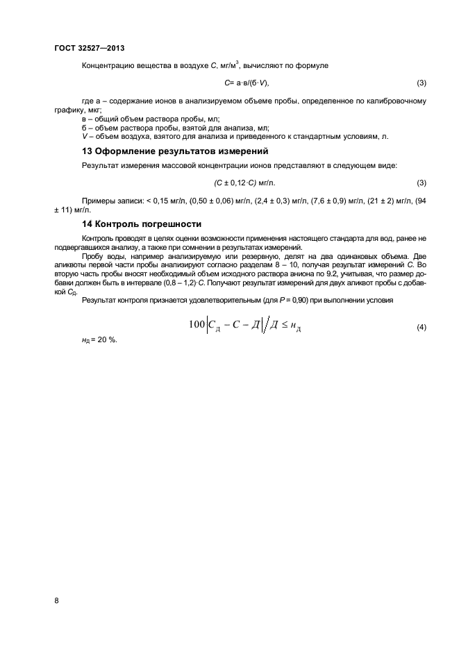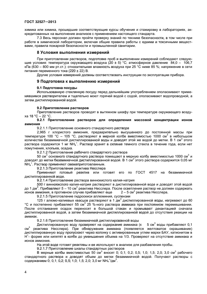 | Область и условия применения: | Настоящий стандарт устанавливает процедуру измерения методом фотометрии массовой концентрации в воде аммиака и ионов аммония (суммарно) в диапазоне от 0,05 до 3 мг/дм куб., нитрит-анионов от 0,003 до 0,3 мг/дм куб. и нитрат-анионов от 0,1 до 6,0 мг/дм куб. и в воздухе – аммиака и ионов аммония (суммарно) в диапазоне от 0,04 до 2,5 мг/м куб., нитрит-анионов от 0,003 до 0,25 мг/м куб. и нитрат-анионов от 0,08 до 5 мг/м куб |
