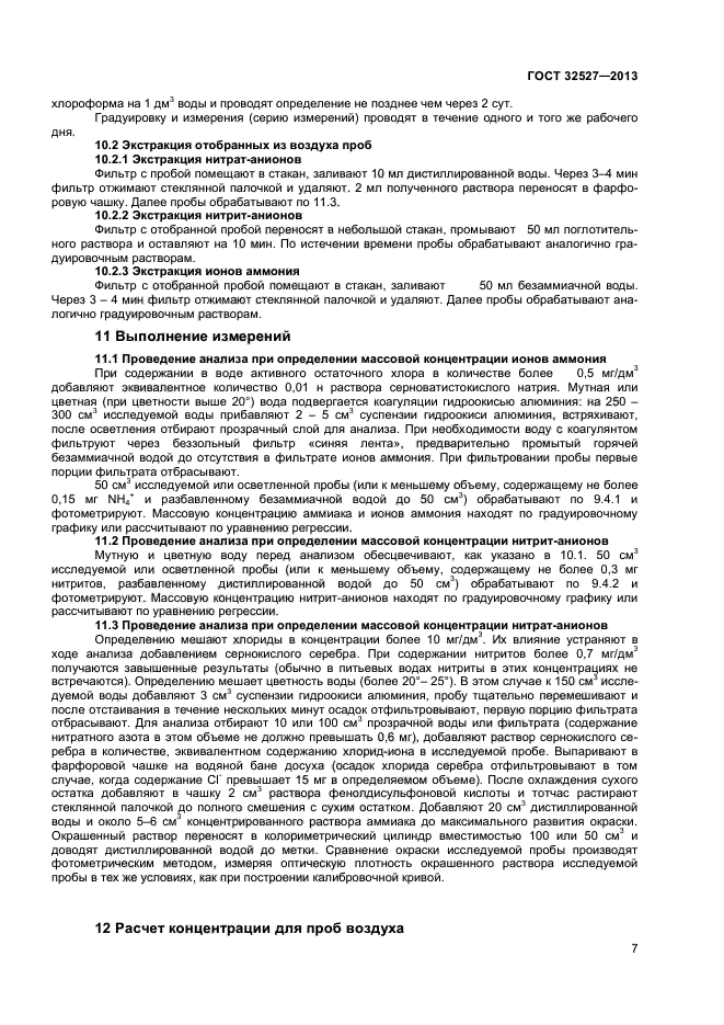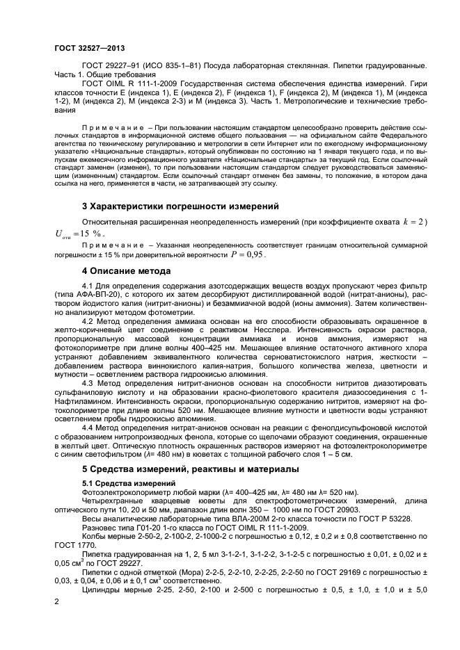 Настоящий стандарт устанавливает процедуру измерения методом фотометрии массовой концентрации в воде аммиака и ионов аммония (суммарно) в диапазоне от 0,05 до 3 мг/дм куб., нитрит-анионов от 0,003 до 0,3 мг/дм куб. и нитрат-анионов от 0,1 до 6,0 мг/дм куб. и в воздухе – аммиака и ионов аммония (суммарно) в диапазоне от 0,04 до 2,5 мг/м куб., нитрит-анионов от 0,003 до 0,25 мг/м куб. и нитрат-анионов от 0,08 до 5 мг/м куб
