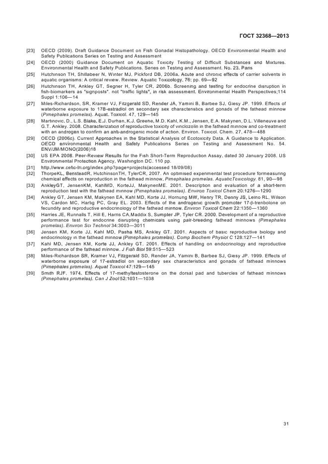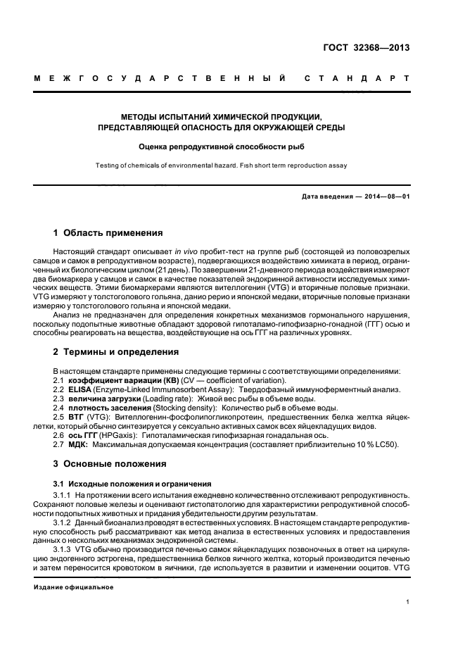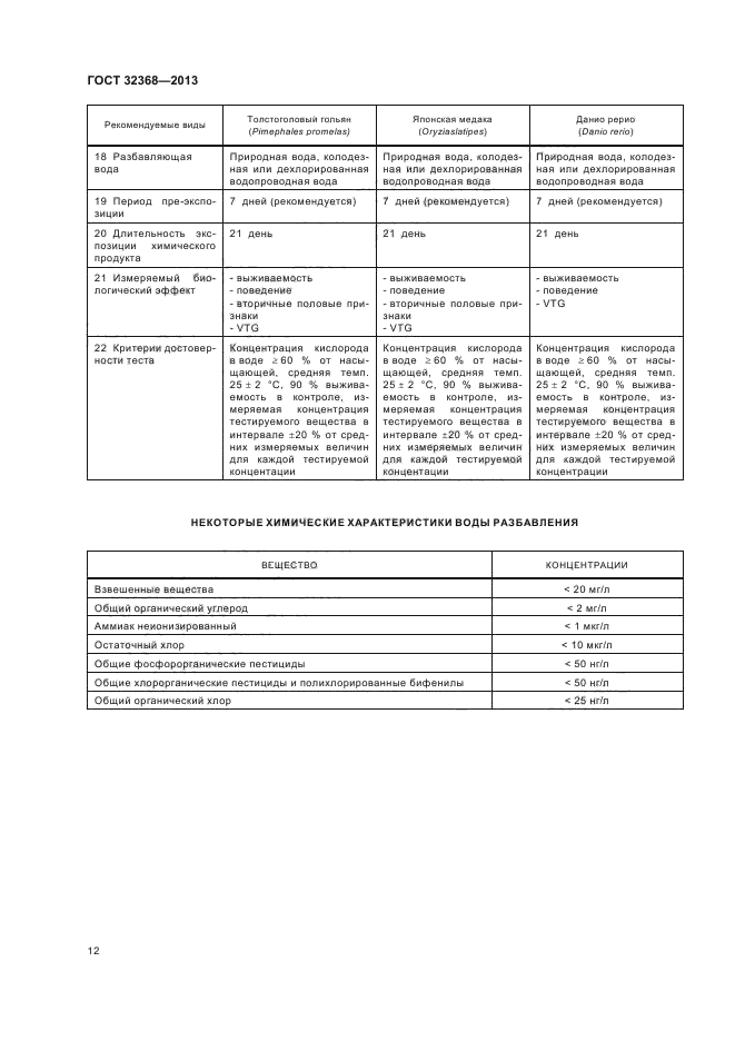 | Область и условия применения: | Настоящий стандарт описывает invivo пробит-тестна группе рыб (состоящей из половозрелых самцов и самок в репродуктивном возрасте), подвергающихся воздействию химиката в период, ограниченный их биологическим циклом (21 день) |