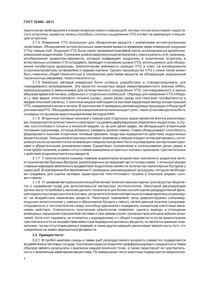 Настоящий стандарт описывает invivo пробит-тестна группе рыб (состоящей из половозрелых самцов и самок в репродуктивном возрасте), подвергающихся воздействию химиката в период, ограниченный их биологическим циклом (21 день)