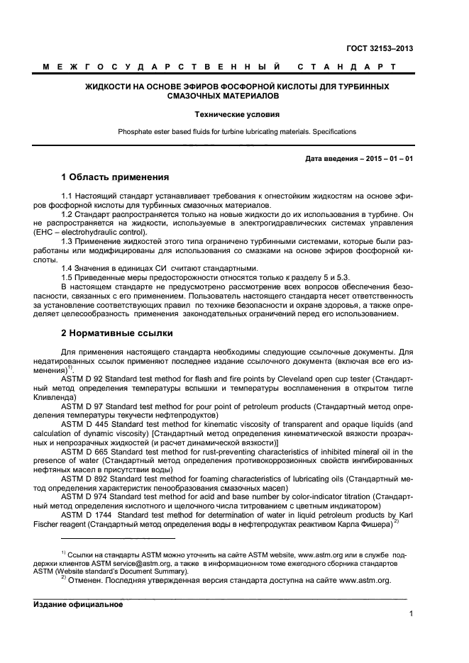 | Область и условия применения: | Настоящий стандарт устанавливает требования к огнестойким жидкостям на основе эфиров фосфорной кислоты для турбинных смазочных материалов |