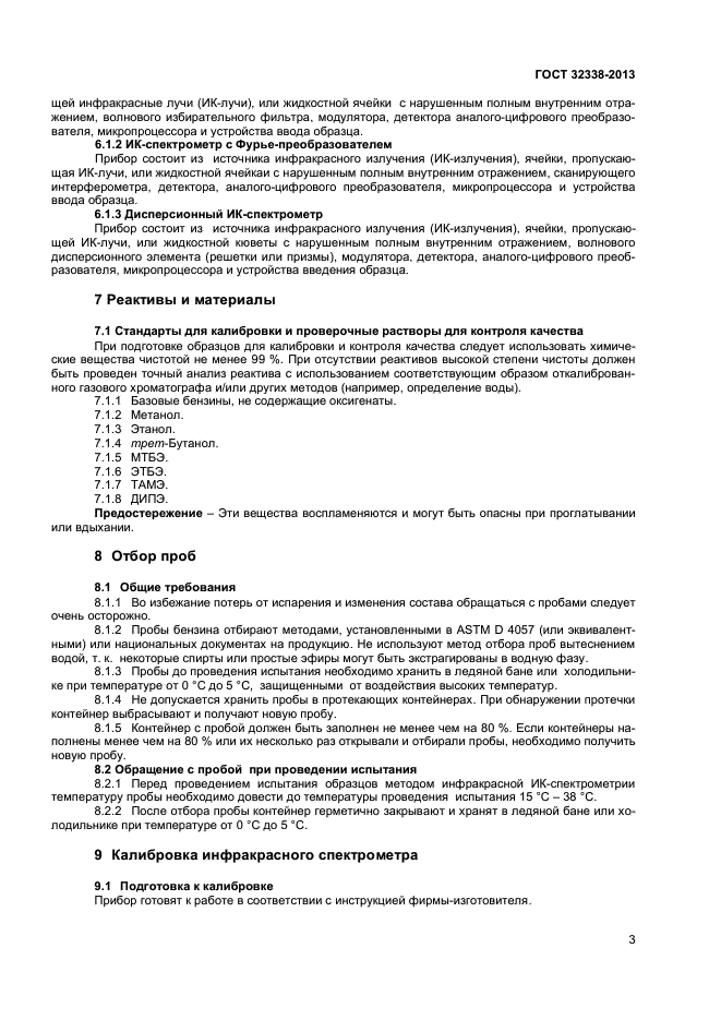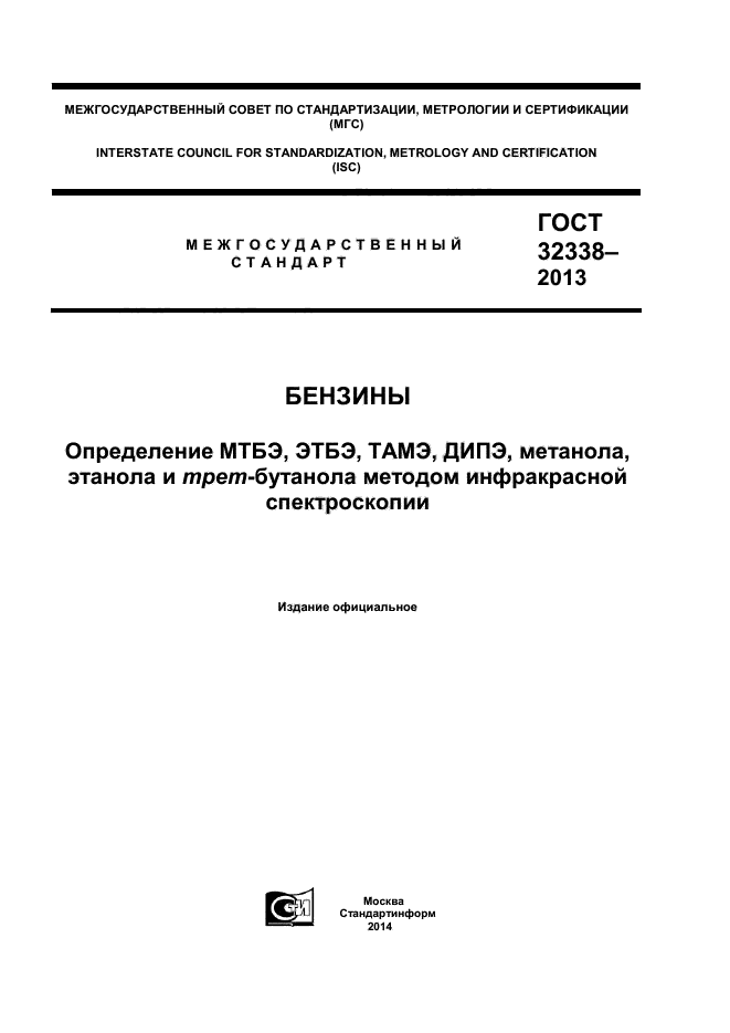 Настоящий стандарт устанавливает метод определения метанола, этанола, трет-бутанола, метил-трет-бутилового эфира (МТБЭ), этил-трет-бутилового эфира (ЭТБЭ), трет-амил-метилового эфира (ТАМЭ) и диизопропилового эфира (ДИПЭ) в бензине инфракрасной спектроскопией