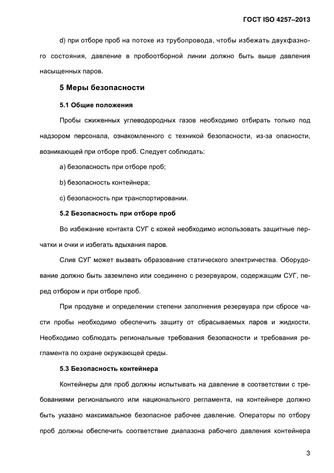 | Область и условия применения: | Настоящий стандарт устанавливает требования к отбору проб неохлажденных сжиженных углеводородных газов |
