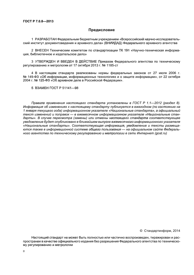 | Область и условия применения: | Настоящий стандарт устанавливает термины и определения основных понятий, используемые в области делопроизводства и архивного дела.