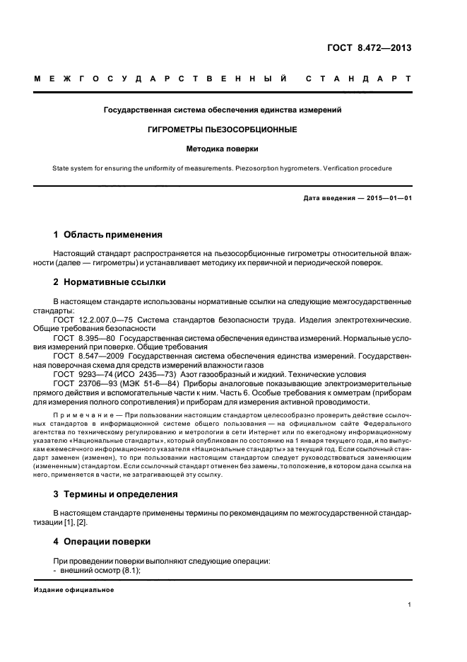 Настоящий стандарт распространяется на пьезосорбционные гигрометры относительной влажности и устанавливает методику их первичной и периодической поверок