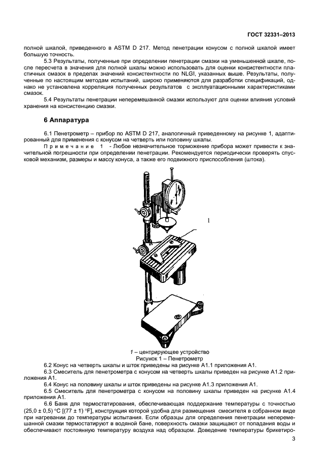 | Область и условия применения: | Настоящий стандарт устанавливает два метода определения пенетрации пластичных смазок образцов небольших объемов с использованием пенетрометра конусом на одну четверть и половину шкалы. Методы предназначены для определения пенетрации неперемешанной и перемешанной смазок.