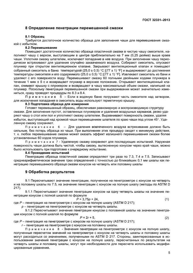 Пенетрация неперемешанной смазки обычно не характеризирует консистенцию эксплуатируемой смазки, так же достоверно, как пенетрация перемешанной смазки. Для исследования пластичных смазок предпочтительнее пенетрация перемешанной смазки. Значения в единицах системы СИ считают стандартными. Значения в скобках приведены только для информации. Применение настоящего стандарта связано с использованием в процессе испытания опасных материалов, операций и оборудования. В настоящем стандарте не предусмотрено рассмотрение всех вопросов обеспечения безопасности. Пользователь настоящего стандарта несет ответственность за установление соответствующих правил по технике безопасности и охране труда, а также определяет целесообразность применения законодательных ограничений перед его использованием |