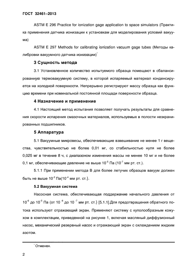 Настоящий стандарт устанавливает метод определение скорости испарения смазочных материалов в термовакуумной системе при значениях давления и температуры, необходимых для получения измеряемой скорости испарения (выпаривания) или признаков разложения