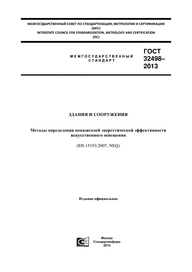 | Название рус.: | Здания и сооружения. Методы определения показателей энергетической эффективности искусственного освещения |