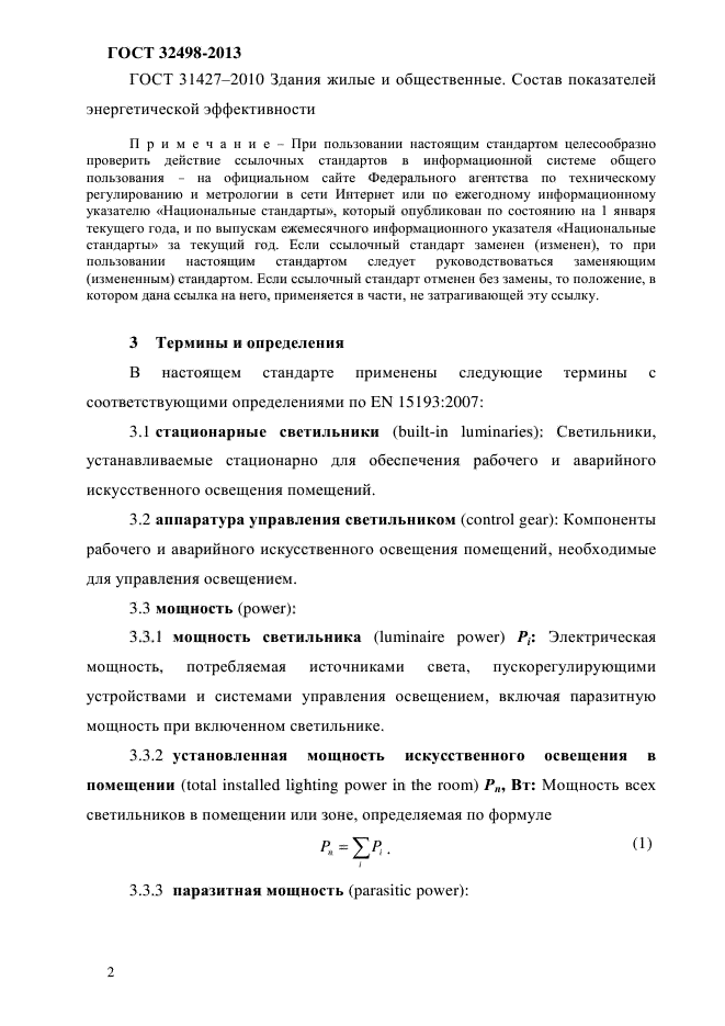 Настоящий стандарт распространяется на искусственное освещение общественных, жилых и производственных зданий. Нормируемые показатели и нормативные значения показателей энергетической эффективности искусственного освещения для конкретных видов помещений и зданий определены ГОСТ 31427 и межгосударственными сводами правил по проектированию и строительству |
