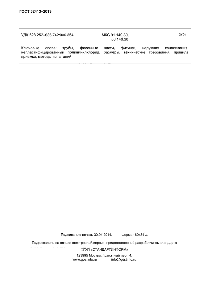 | Название рус.: | Трубы и фасонные части из непластифицированного поливинилхлорида для систем наружной канализации. Технические условия |