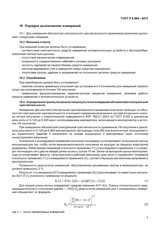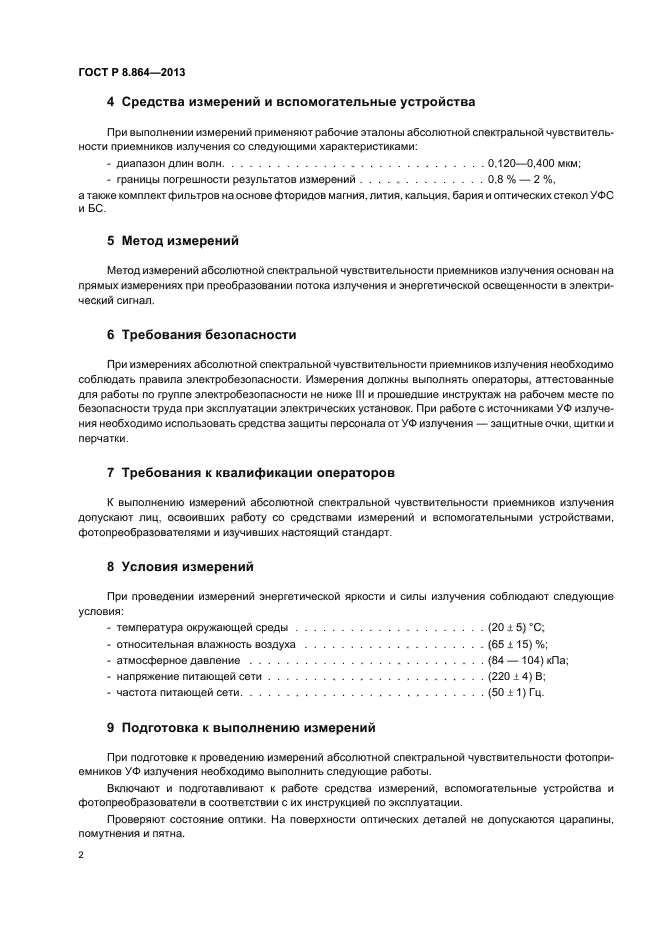 Настоящий стандарт устанавливает методику измерений абсолютной спектральной чувствительности (далее - АСЧ) приемников излучения в диапазоне длин волн 0,120 - 0,400 мкм, используемых для контроля характеристик ультрафиолетового излучения, а также устанавливает требования к погрешности измерений
