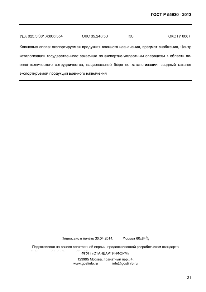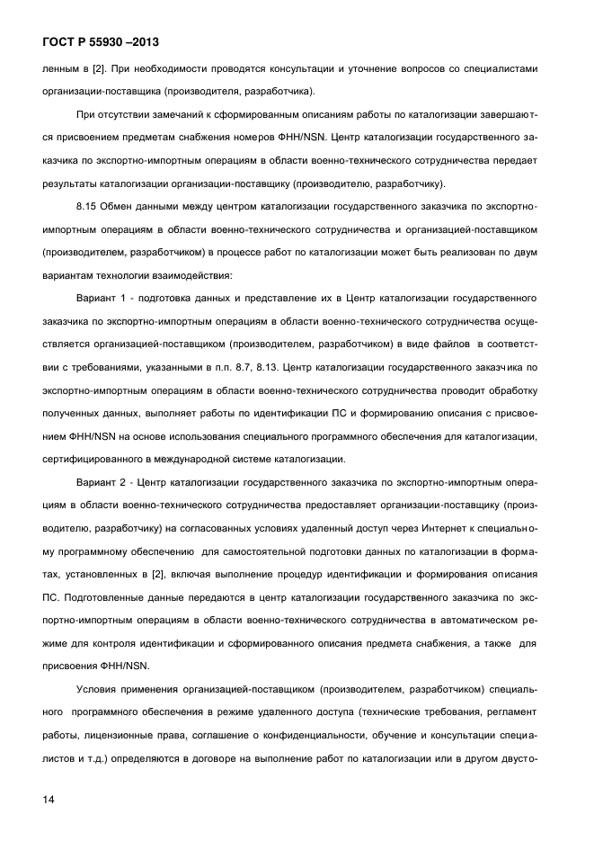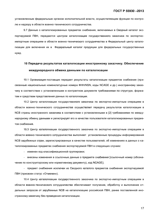 | Область и условия применения: | Настоящий стандарт определяет основные положения по каталогизации продукции военного назначения, поставляемой на экспорт, и устанавливает общие требования к организации и процедурам выполнения этих работ.