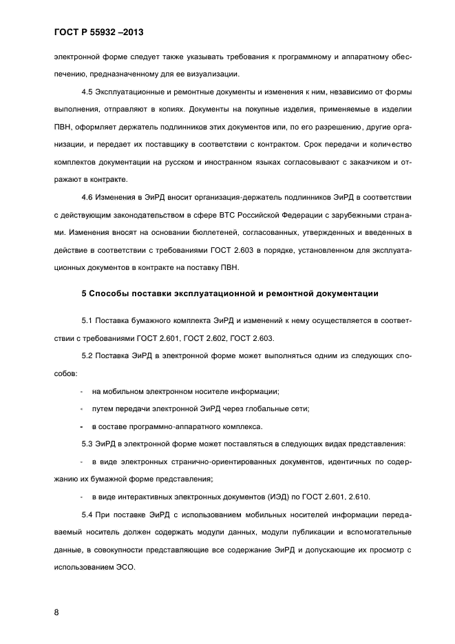 На основе настоящего стандарта допускается, при необходимости, разрабатывать стандарты, устанавливающие требования к способам и процедурам поставки эксплуатационной и ремонтной документации на конкретные виды продукции военного назначения с учетом их специфики