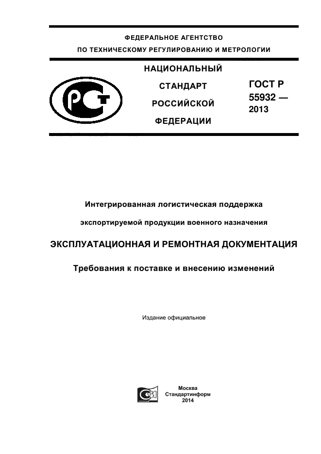 | Название рус.: | Интегрированная логистическая поддержка экспортируемой продукции военного назначения. Эксплуатационная и ремонтная документация. Требования к поставке и внесению изменений |