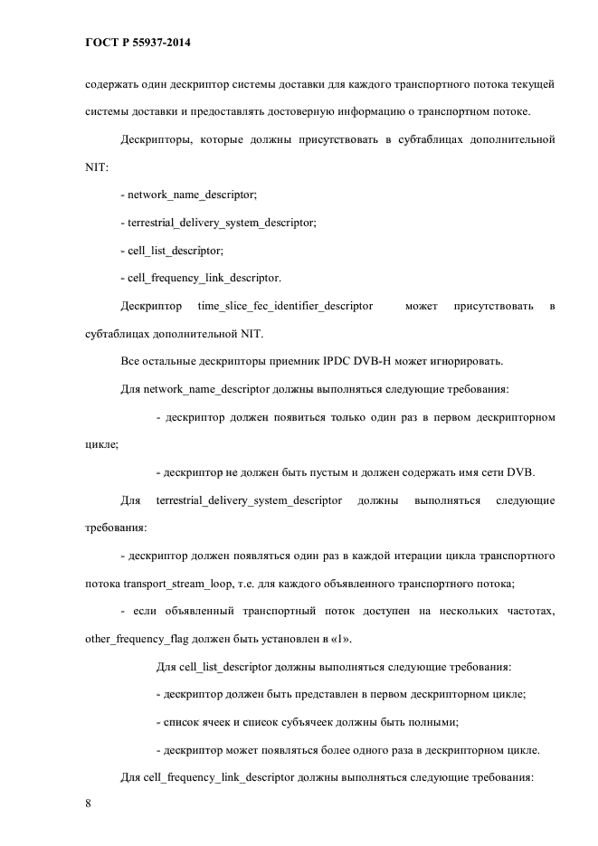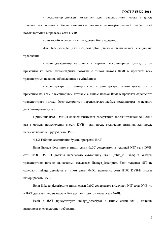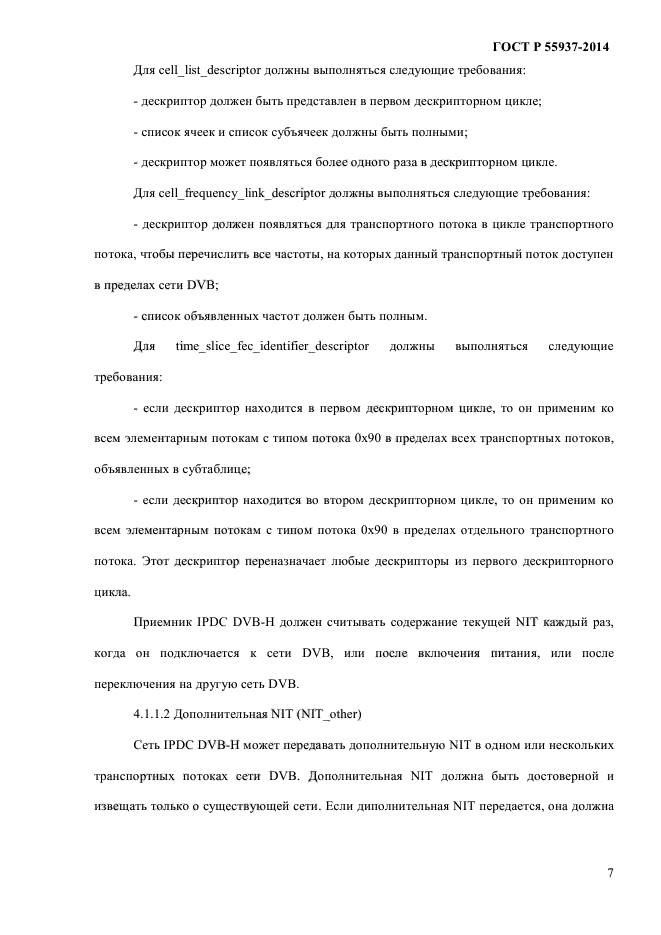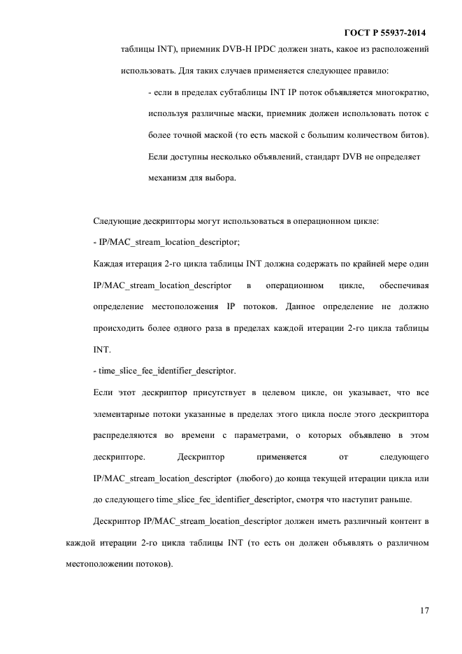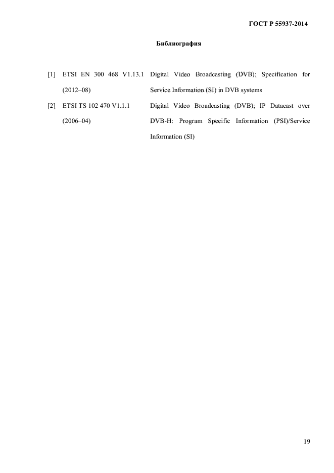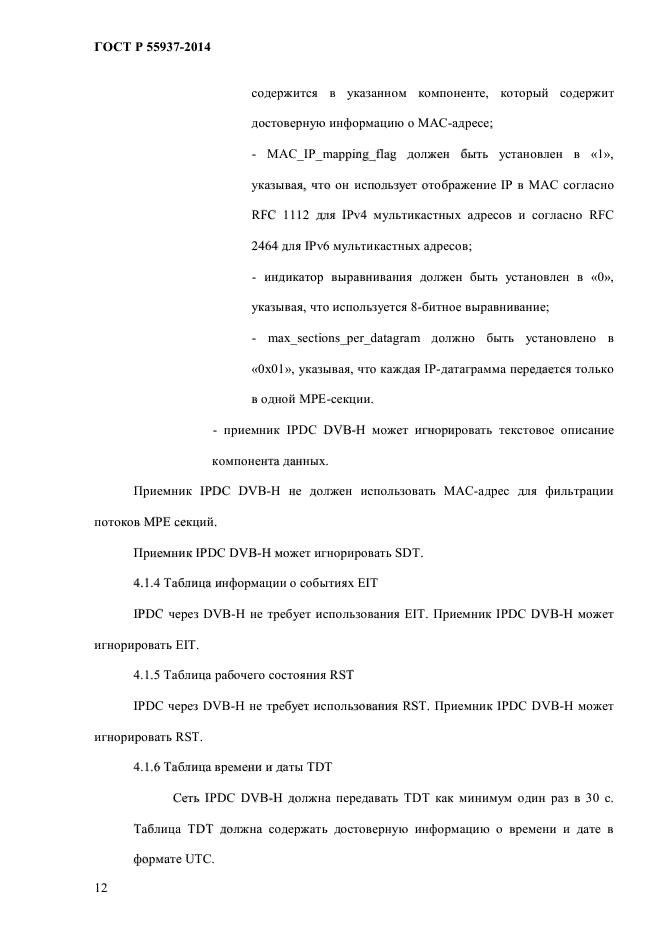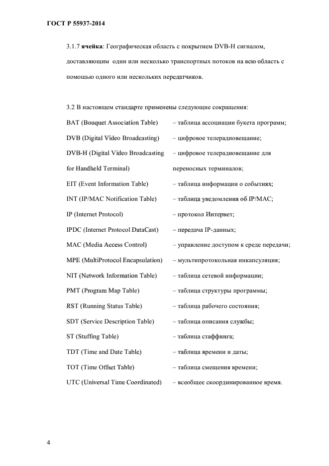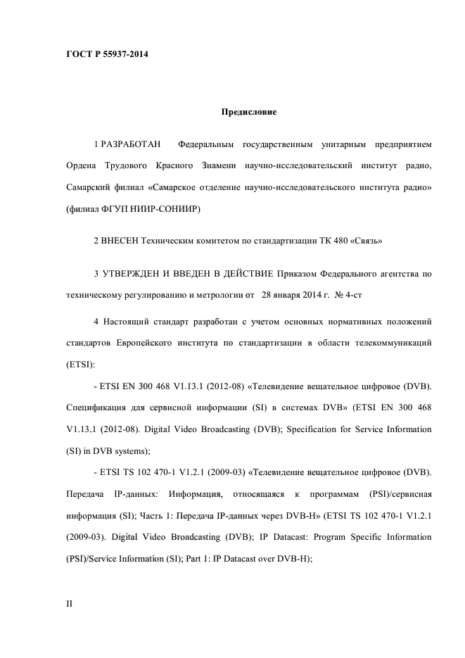 | Область и условия применения: | Настоящий стандарт распространяется на использование служебной информации при передаче IP-данных (IPDC) в сетях наземного телевизионного вещания для переносных терминалов (DVB-H).