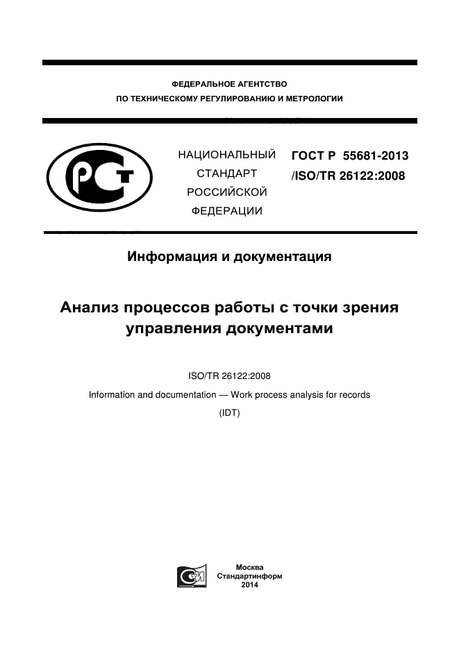 | Название рус.: | Информация и документация. Анализ процессов работы с точки зрения управления документами |