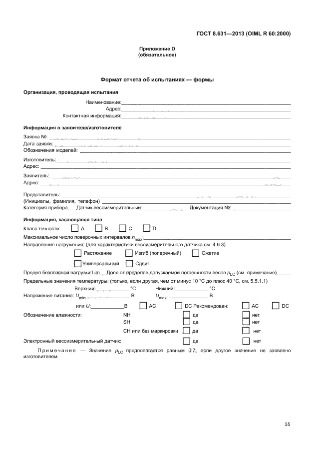 | Область и условия применения: | Настоящий стандарт устанавливает основные метрологические статические характеристики и статические методики испытаний для весоизмерительных датчиков, применяемых при измерении массы. Настоящий стандарт предназначен для обеспечения организаций единообразными средствами для определения метрологических характеристик весоизмерительных датчиков, применяемых в измерительных приборах, которые являются объектами метрологического контроля. |