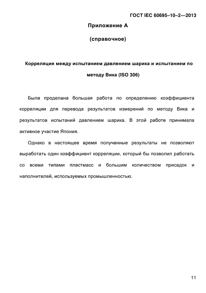 | Область и условия применения: | Настоящий стандарт устанавливает требования к испытанию давлением шарика, применяемому для определения жаропрочности частей из неметаллических материалов |