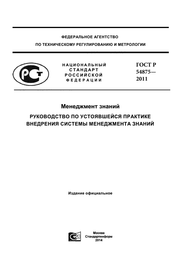 | Название англ.: | Knowledge management. Good practice guide for knowledge management system implemnation |