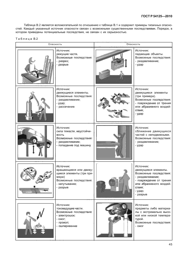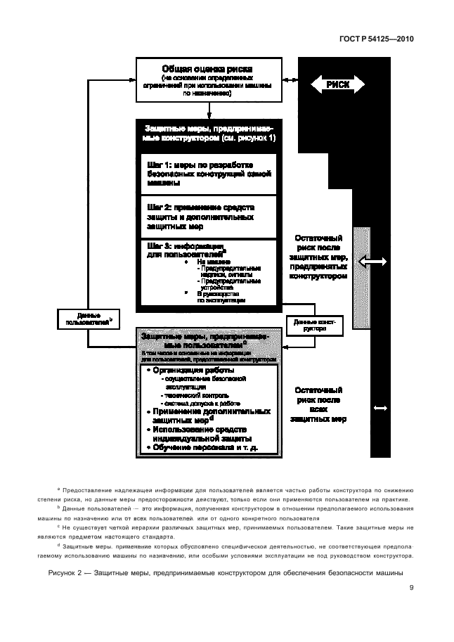 Настоящий стандарт определяет основные термины и устанавливает методы и принципы оценки и снижения риска, помогающие конструкторам обеспечить безопасность машин. Эти принципы основаны на знаниях и опыте, полученных в результате конструирования, использования машин и оборудования, анализа их неполадок, несчастных случаев и рисков, связанных с эксплуатацией механизмов; они являются основой для оценки и устранения потенциальной опасности или снижения риска ее возникновения на протяжении всего срока эксплуатации машины.
