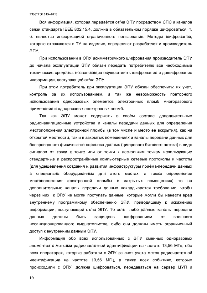 - автоматическую запись на ЭПУ и считывание информации с ЭПУ посредством средств радиосвязи с применением ассиметричного шифрования (электронной цифровой подписи); - идентификацию ЭПУ; - автоматическое оповещение о состоянии целостности или вскрытия ЭПУ. Стандарт применяют при разработке, производстве, использовании ЭПУ |