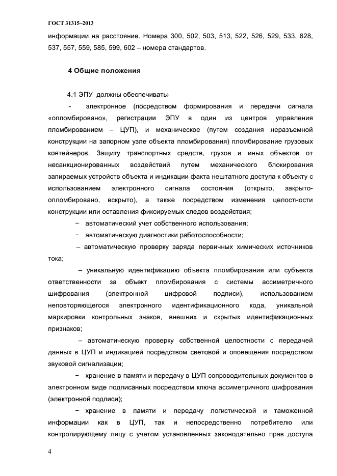 Настоящий стандарт распространяется на электронные пломбировочные устройства (далее - ЭПУ), предназначенные для пломбирования устройств запирания грузовых контейнеров и обеспечивающих: