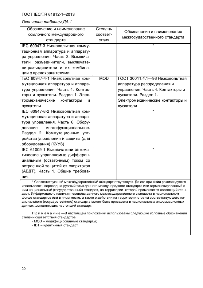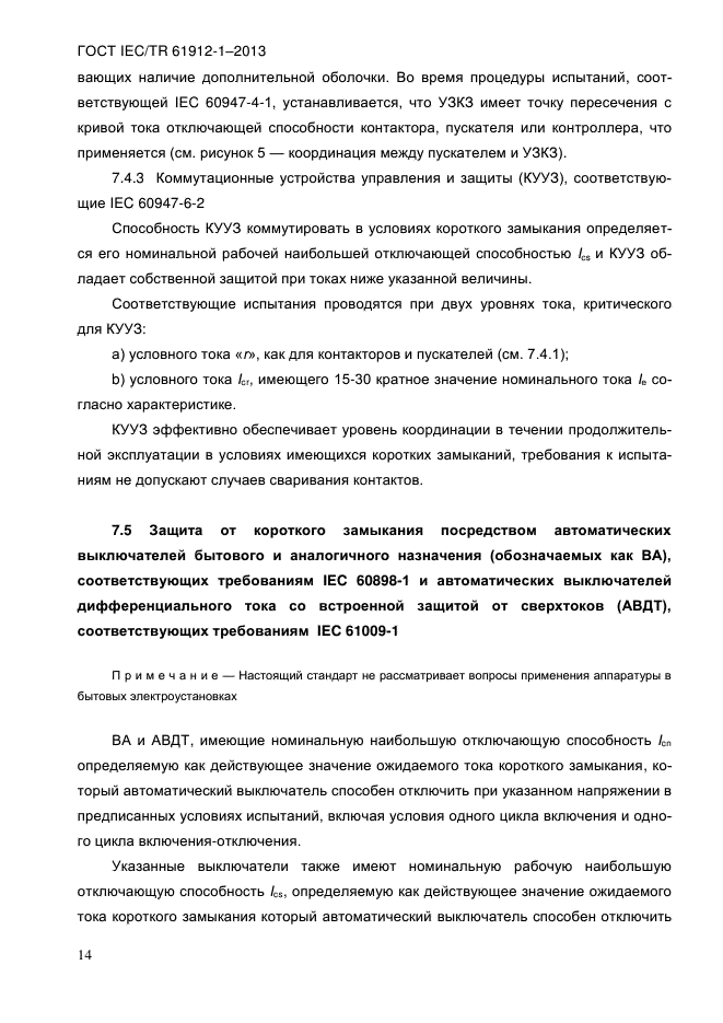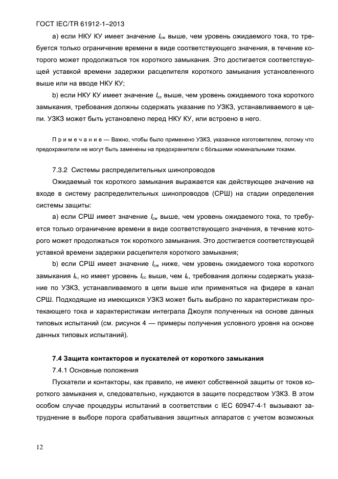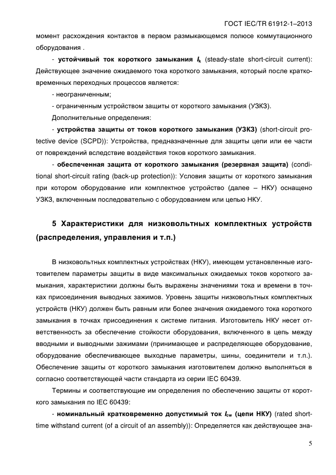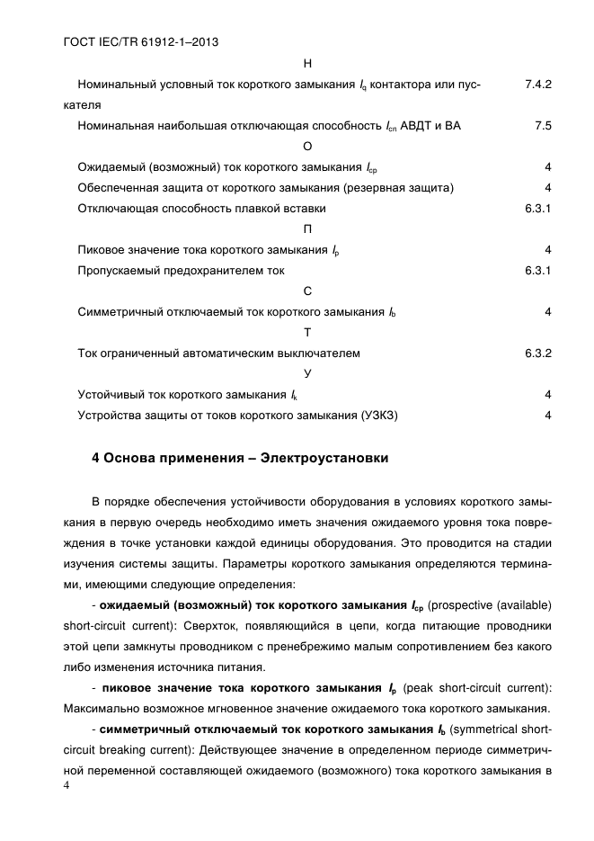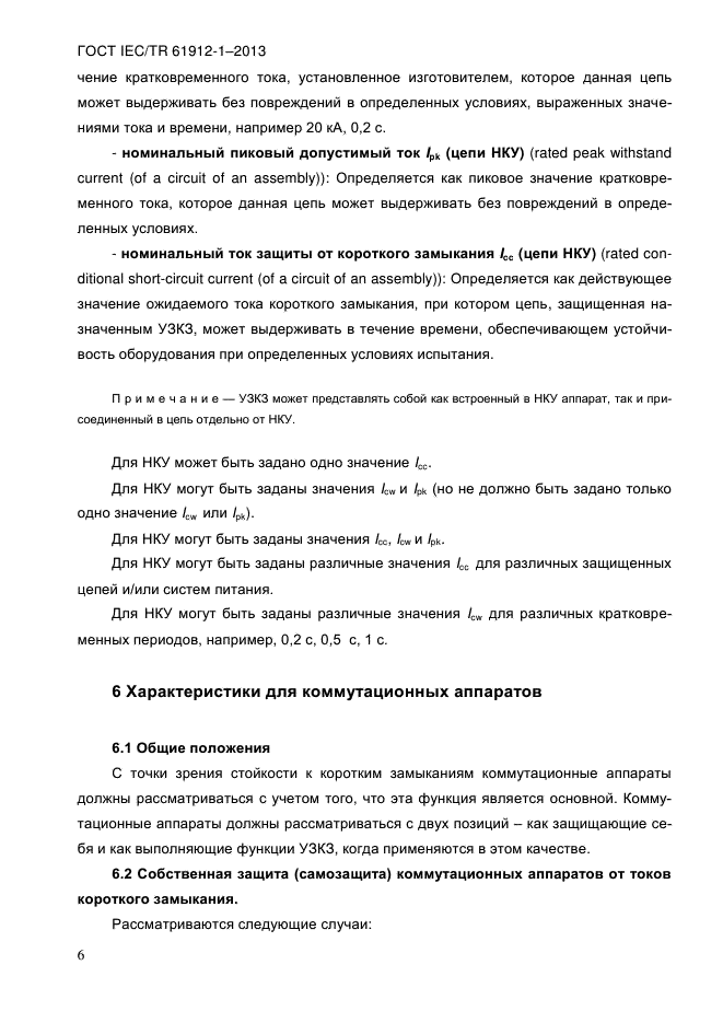 | Область и условия применения: | Настоящий стандарт служит в качестве руководства для применения значений короткого замыкания, установленных в стандартах на низковольтную коммутационную аппаратуру, аппаратуру управления и комплектные устройства, обобщая определения уровней и приводя примеры их применения |