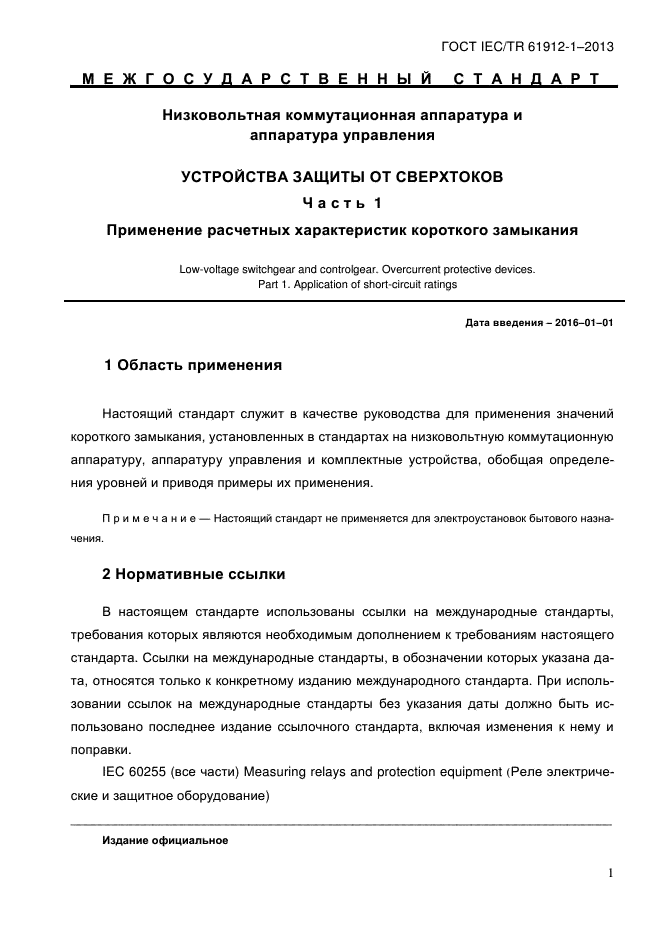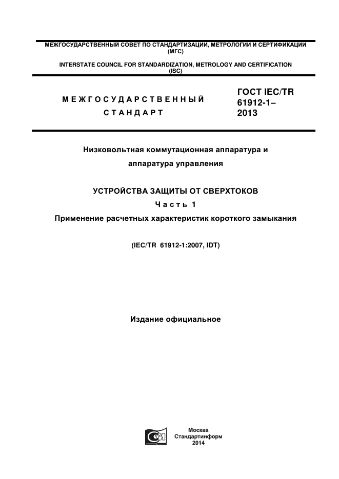 | Название англ.: | Low-voltage switchgear and controlgear. Overcurrent protective devices. Part 1. Application of short-circuit ratings |