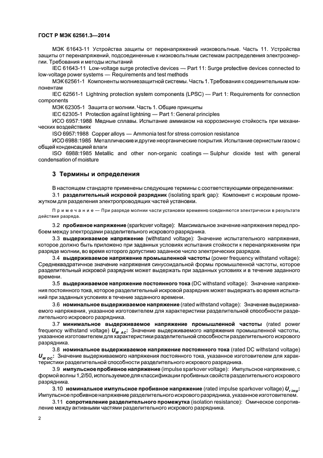 | Название англ.: | Lightning protection system components. Part 3. Requirements for isolating spark gaps |