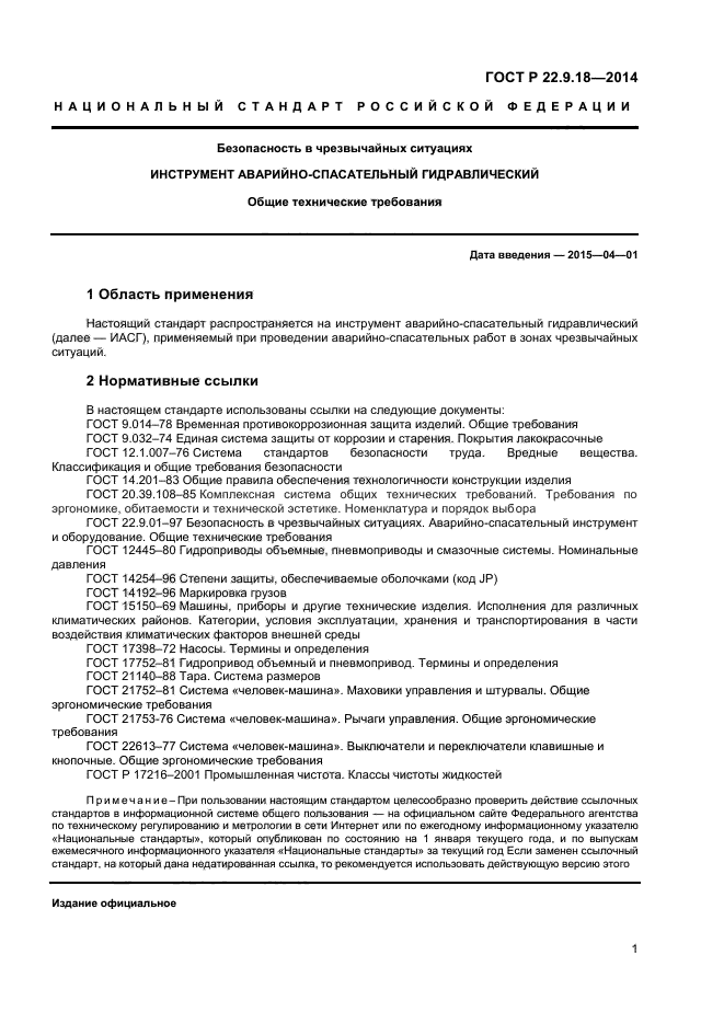 Настоящий стандарт распространяется на инструмент аварийно-спасательный гидравлический (далее - ИАСГ), применяемый при проведении аварийно-спасательных работ в зонах чрезвычайных ситуаций