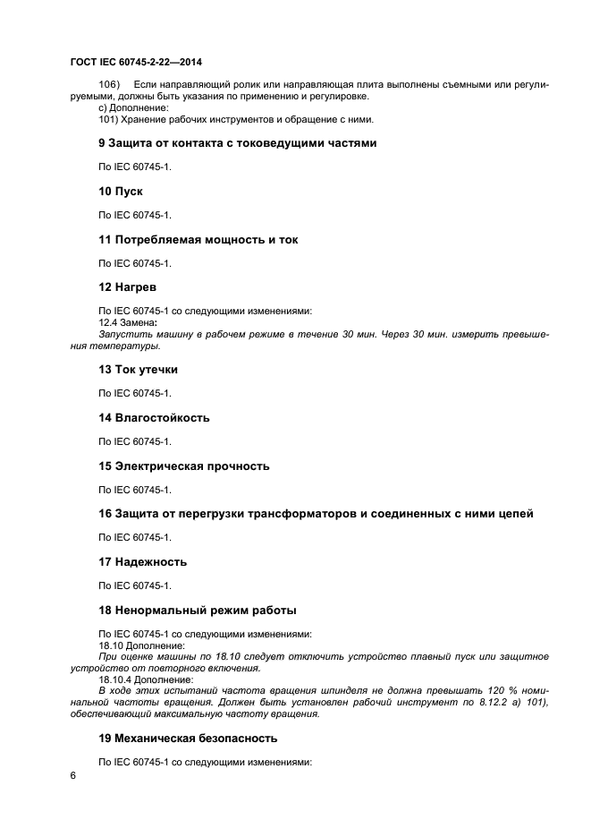 По IEC 60745-1 со следующими изменениями: