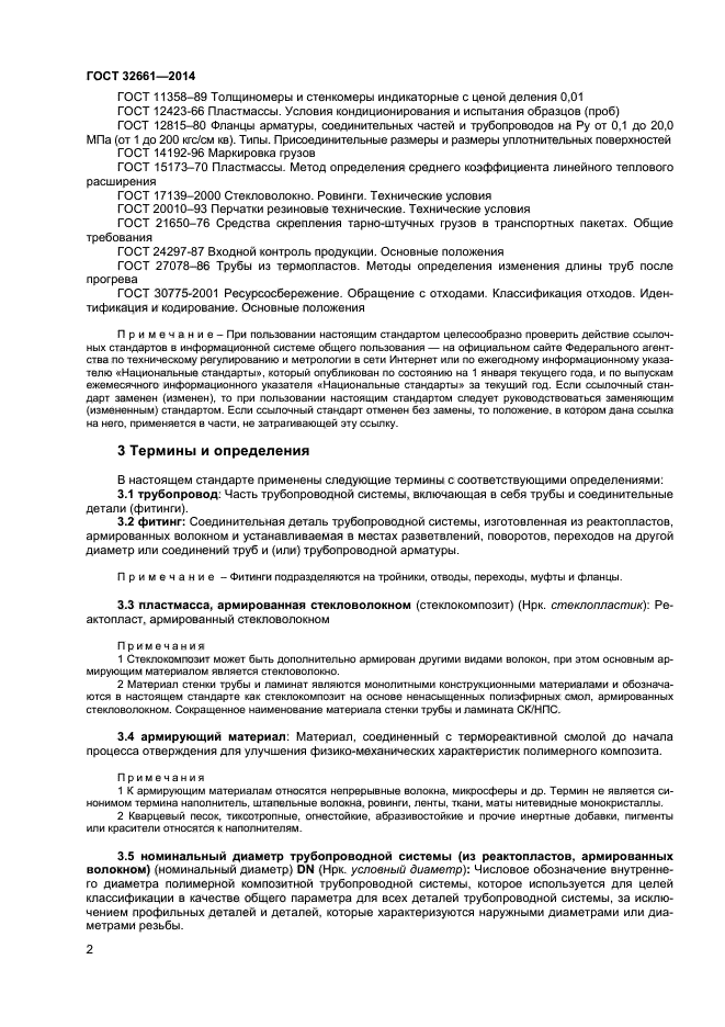 Настоящий стандарт распространяется на трубы и детали трубопроводов из реактопластов, армированных волокном (далее - трубы и фитинги), DN от 300 до 3000, допустимой жесткостью до 10000 Па, допустимым рабочим давлением до 3,2 МПа, температурой рабочей среды до 35 градусов С, предназначенные для строительства систем водоснабжения, дренажа и канализации, транспортирования жидких углеводородов, пара, газообразных и агрессивных сред, а также систем специального назначения.