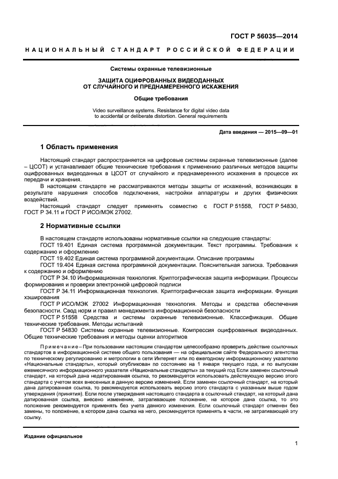 Настоящий стандарт распространяется на цифровые системы охранные телевизионные (далее - ЦСОТ) и устанавливает общие технические требования к применению различных методов защиты оцифрованных видеоданных в ЦСОТ от случайного и преднамеренного искажения в процессе их передачи и хранения