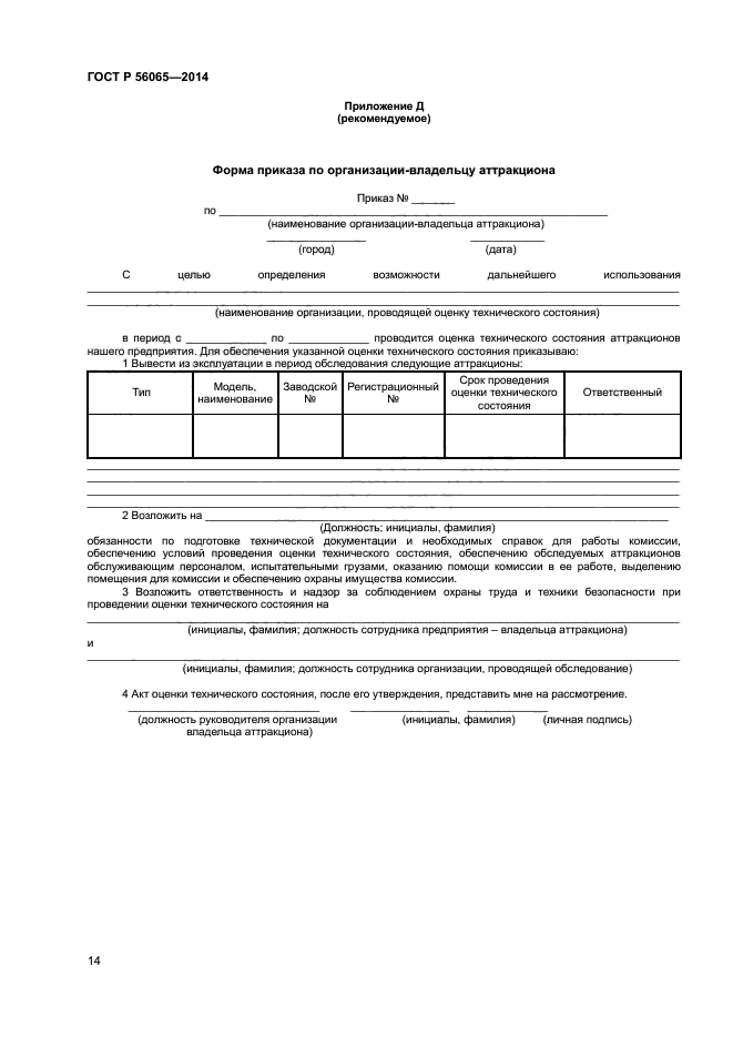 | Область и условия применения: | Настоящий стандарт устанавливает основные организационные и технические требования к процедуре оценки технического состояния механизированных аттракционов , периодичности такой оценки в целях обеспечения безопасности пассажиров и посетителей механизированных аттракционов.