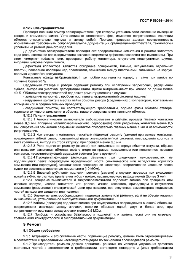 | Область и условия применения: | Настоящий стандарт содержит основные организационные и технические требования к процедуре и устанавливает правила проведения капитального ремонта механизированных аттракционов, и предназначен для подготовки ремонтного производства, ремонта изделий, а также контроля качества произведенного ремонта.