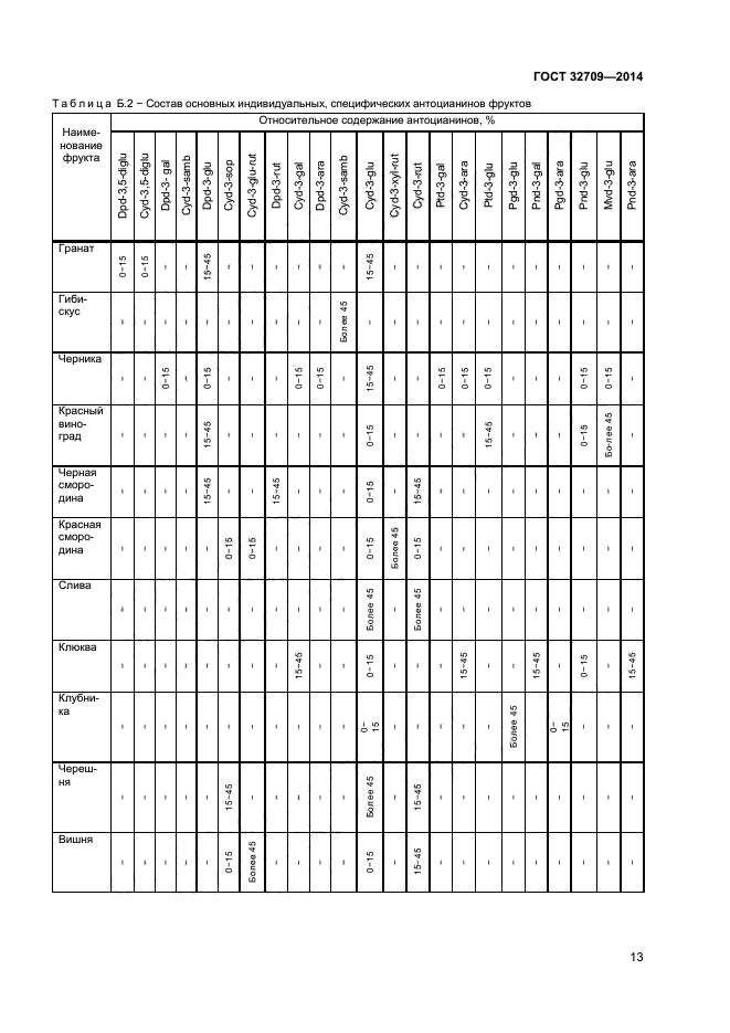 Настоящий стандарт распространяется на фруктовые соки и нектары, фруктовые концентрированные соки, фруктовые пюре и концентрированные пюре, морсы и концентрированные морсы, сокосодержащие напитки, из фруктов, имеющих красную, синюю и фиолетовую окраску, включая соковую продукцию, обогащенную и для детского, питания и устанавливает следующие методы определения антоцианинов: