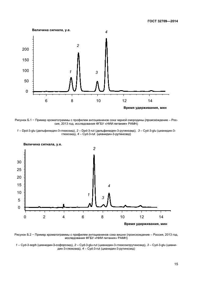 - метод высокоэффективной обращенно-фазовой жидкостной хроматографии для качественного определения антоцианинов в соковой продукции;