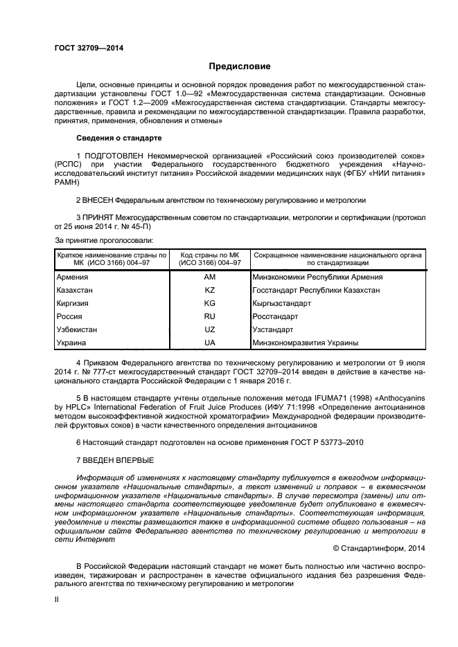 | Область и условия применения: | Настоящий стандарт распространяется на фруктовые соки и нектары, фруктовые концентрированные соки, фруктовые пюре и концентрированные пюре, морсы и концентрированные морсы, сокосодержащие напитки, из фруктов, имеющих красную, синюю и фиолетовую окраску, включая соковую продукцию, обогащенную и для детского, питания и устанавливает следующие методы определения антоцианинов: