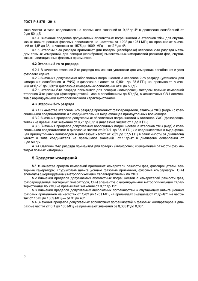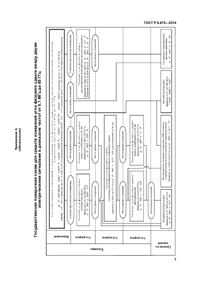 Настоящий стандарт распространяется на государственную поверочную схему для средств измерений угла фазового сдвига между двумя электрическими сигналами в диапазоне частот от 0,1 МГц до 65 ГГц и устанавливает порядок передачи единиц УФС (см. рисунок А.1 приложения А) от государственного первичного эталона средствам измерений с помощью рабочих (разрядных) эталонов с указанием погрешностей и основных методов поверки (калибровки)