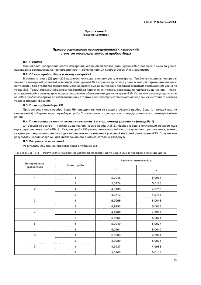 Настоящий стандарт распространяется на ядерные материалы и специальные неядерные материалы, подлежащие государственному учету и контролю, и устанавливает метод экспериментального оценивания составляющих неопределенности результата измерений, вызванных пробоотбором, в системе измерений ЯМ с учетом всех этапов перевода объединенной пробы ЯМ в лабораторную пробу ЯМ