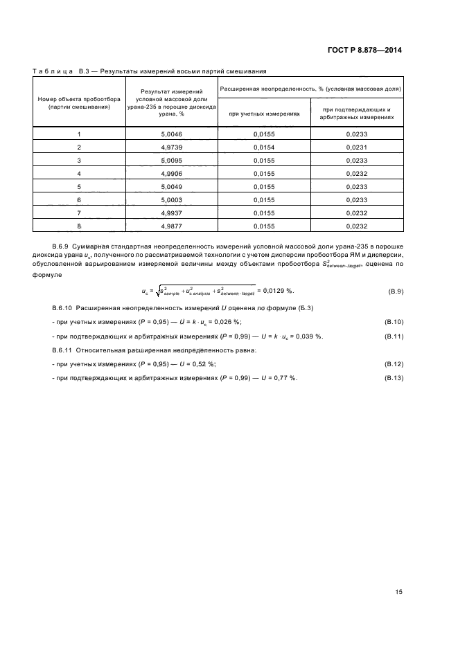 | Область и условия применения: | Настоящий стандарт распространяется на ядерные материалы и специальные неядерные материалы, подлежащие государственному учету и контролю, и устанавливает метод экспериментального оценивания составляющих неопределенности результата измерений, вызванных пробоотбором, в системе измерений ЯМ с учетом всех этапов перевода объединенной пробы ЯМ в лабораторную пробу ЯМ |
