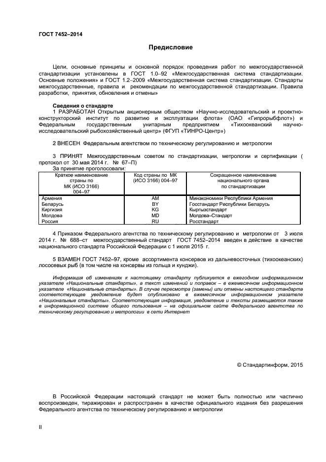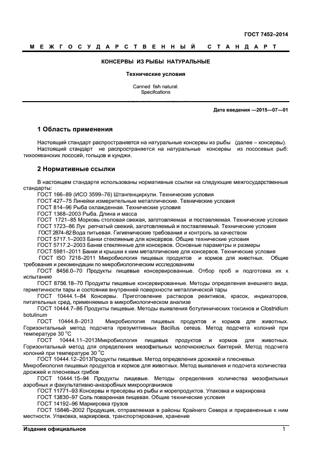 | Взамен в части: | ГОСТ 7452-97 кроме ассортимента консервов из дальневосточных (тихоокеанских) лососевых рыб (в том числе на консервы из гольца и кунджи) |