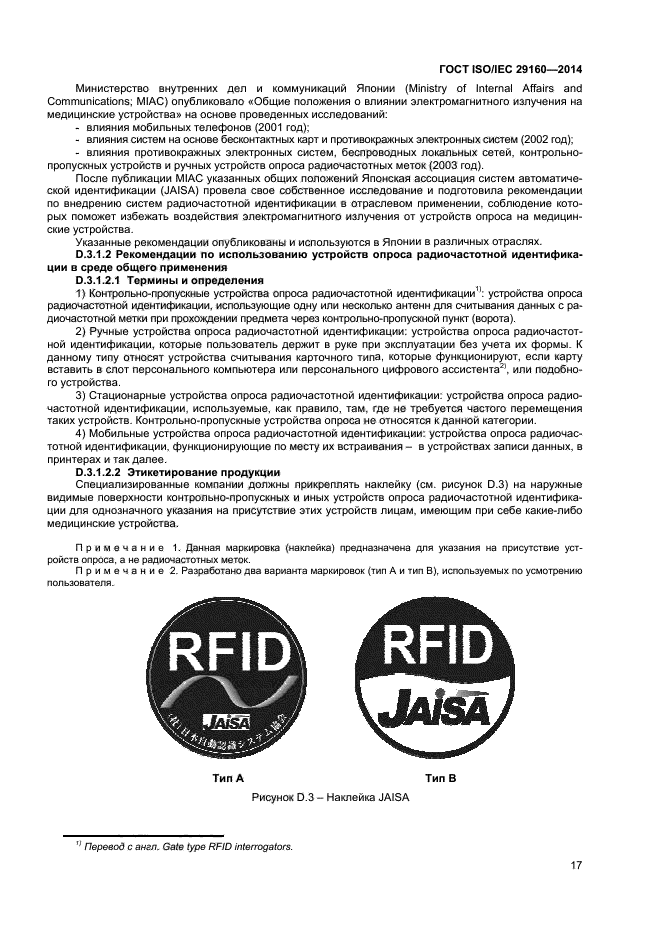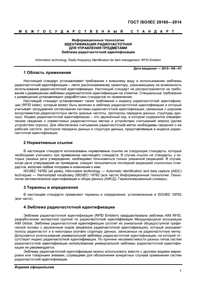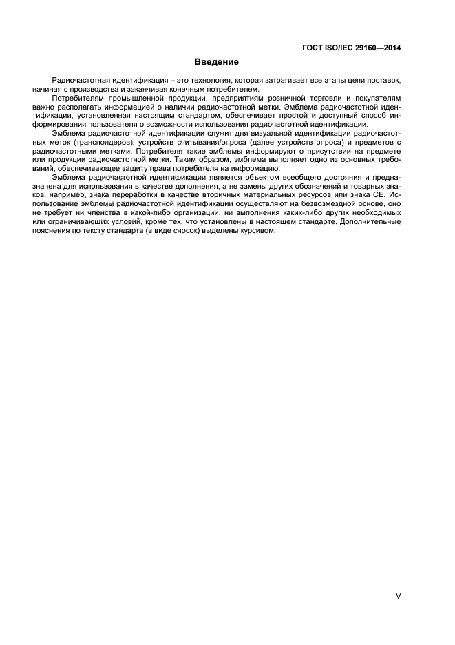 | Область и условия применения: | Настоящий стандарт устанавливает требования к внешнему виду и использованию эмблемы радиочастотной идентификации - легко распознаваемому ориентиру, указывающему на возможность использования радиочастотной идентификации.