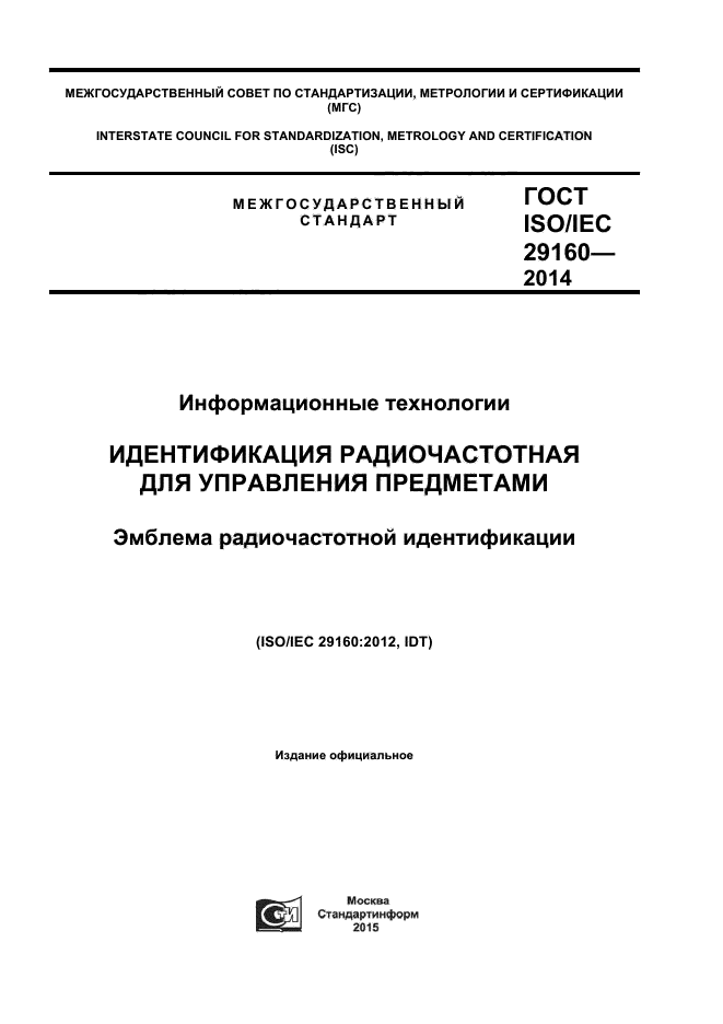 | Обозначение: | ГОСТ ISO/IEC 29160-2014 |