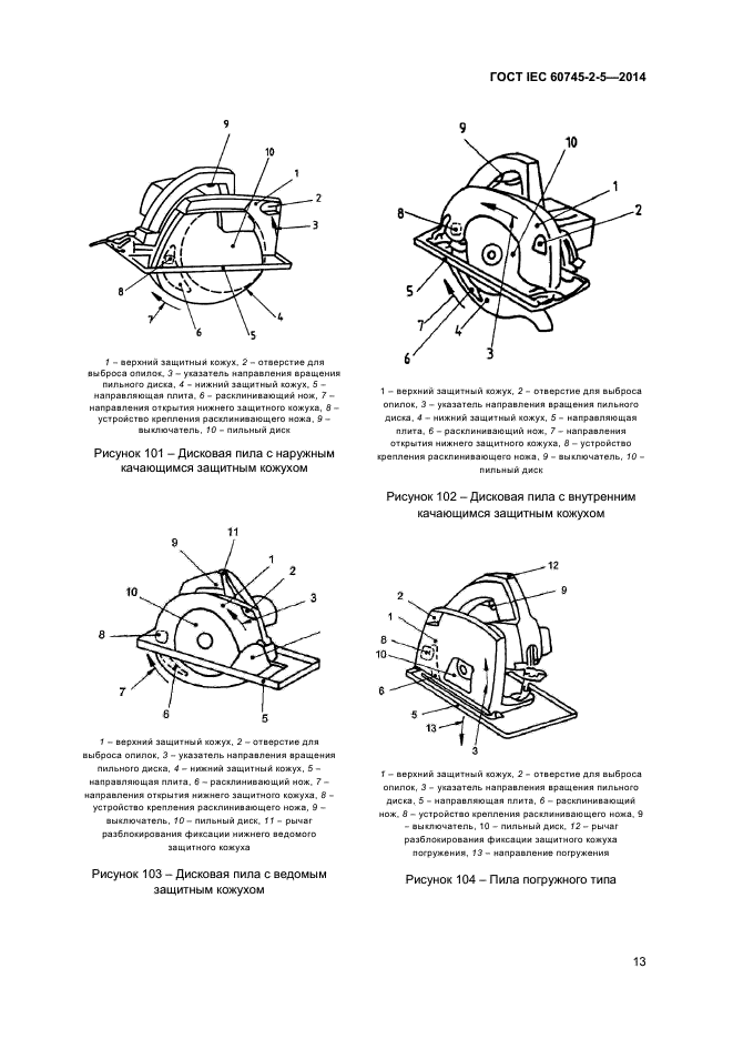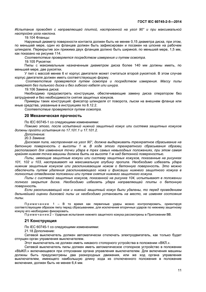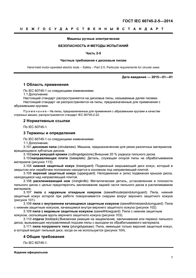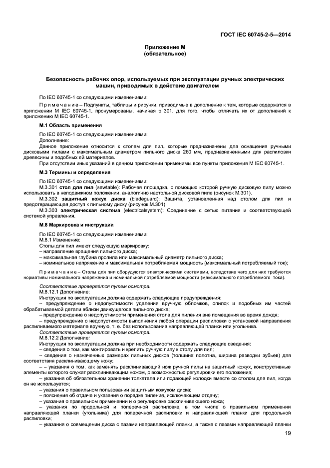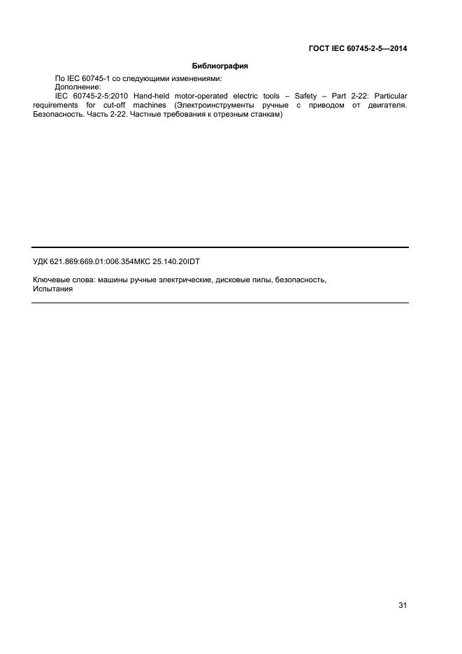 | Название рус.: | Машины ручные электрические. Безопасность и методы испытаний. Часть 2-5. Частные требования к дисковым пилам |