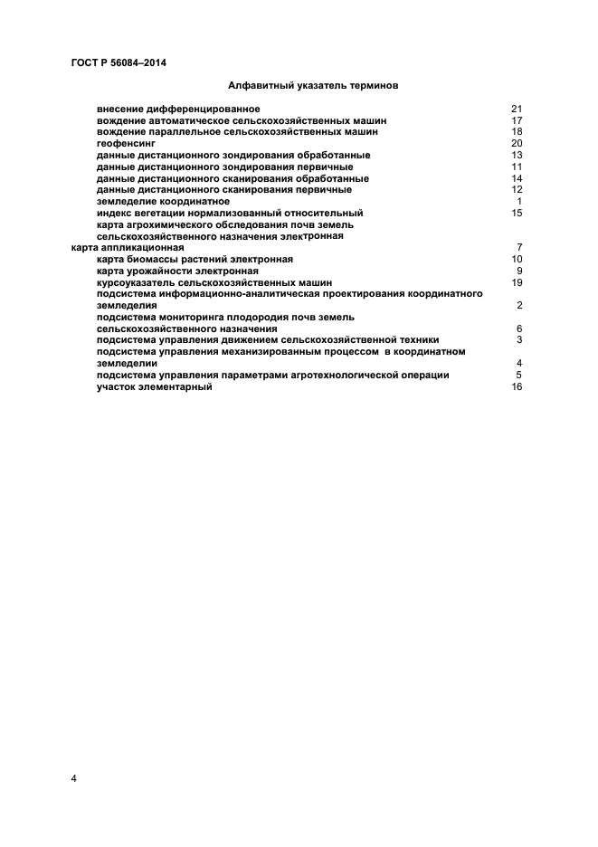 Настоящий стандарт устанавливает термины и определения понятий в области создания и применения систем навигационно-информационного обеспечения координатного земледелия.
