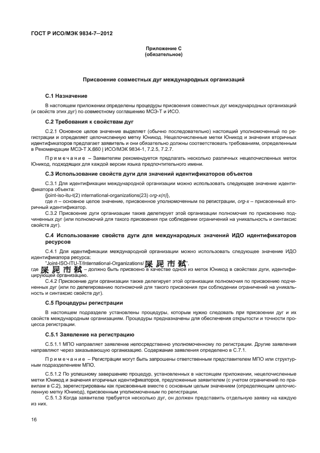 c) совместной дуги международных организаций (см. 3.6.6) дерева международных идентификаторов объектов, определенных в Рекомендации МСЭ-Т Х.660/ ИСО/МЭК 9834-1 [5]