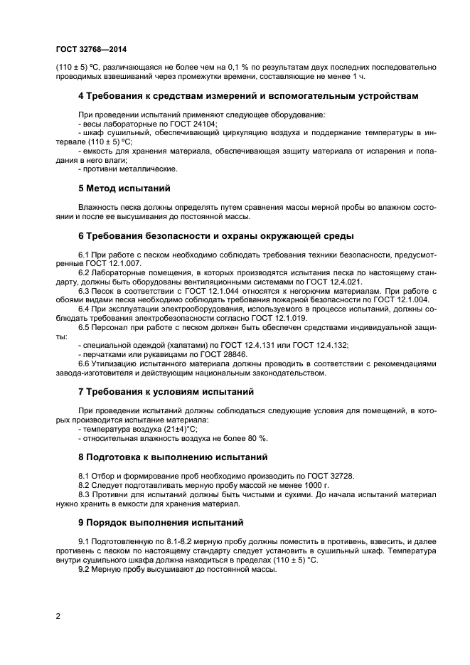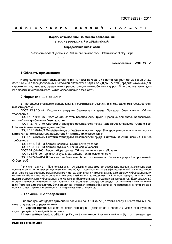 | Область и условия применения: | Настоящий стандарт распространяется на песок природный с истинной плотностью зерен от 2,0 до 2,8 г/см куб. и песок дробленый с истинной плотностью зерен от 2,0 до 3,5 г/см куб., предназначенные для строительства, ремонта, содержания и реконструкции автомобильных дорог общего пользования, и устанавливает метод определения влажности |