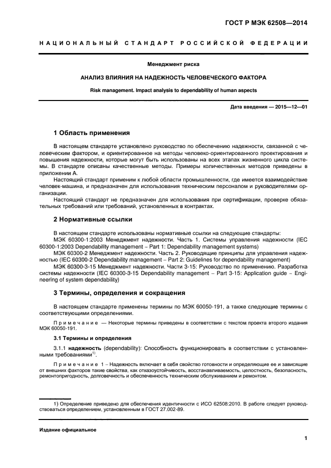 В настоящем стандарте установлено руководство по обеспечению надежности, связанной с человеческим фактором, и ориентированное на методы человеко-ориентированного проектирования и повышения надежности, которые могут быть использованы на всех этапах жизненного цикла системы. В стандарте описаны качественные методы. Примеры количественных методов приведены в приложении A.